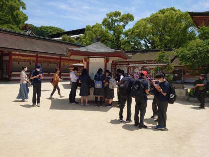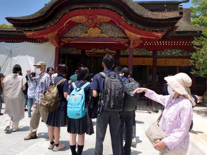 太宰府天満宮で班行動です。水分を補給して、さあ最後の学習です。