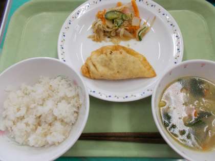 今日は弦巻中で人気メニューのひとつ「ジャンボぎょうざ」です。