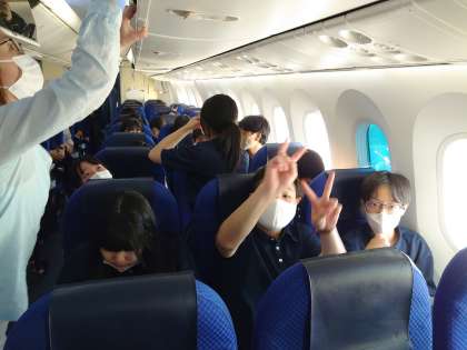 飛行機の中で。いよいよ離陸。