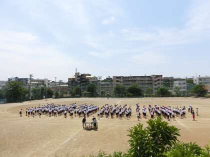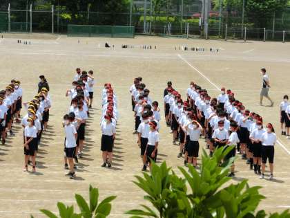 体育の授業、学年練習と準備してきた体育大会も今週末になりました。今日は、3年ぶり、はじめての全校練習となりました。校庭に全校生徒が「ビシッ」と並ぶ姿。泣きそうになりました。