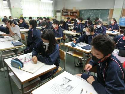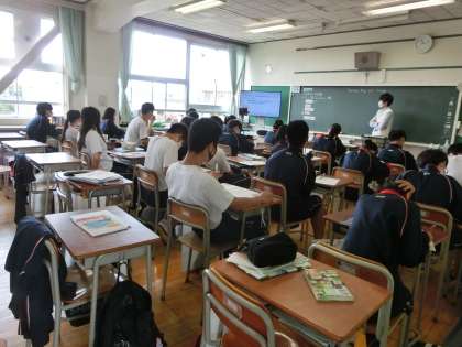 体育大会予行練習延期1 5月31日(火) 公開日 2022/05/31 更新日 2022/05/31 校長室より 予定していた体育大会予行練習が、雨天のため延期になりました。 残念です。授業の様子をアップします。 美術と少人数英語の授業です。 いいね(0)