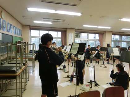 吹奏楽部、基礎練習。