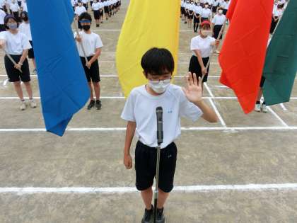 赤・黄色・青・紫・緑…五色の旗が集まって、選手宣誓!!