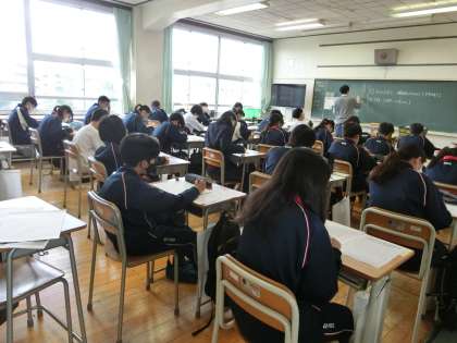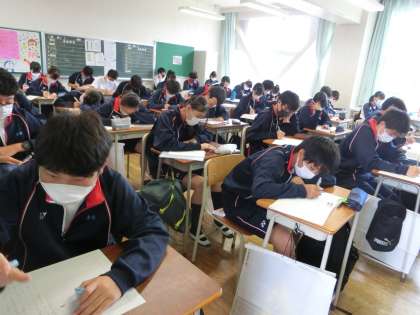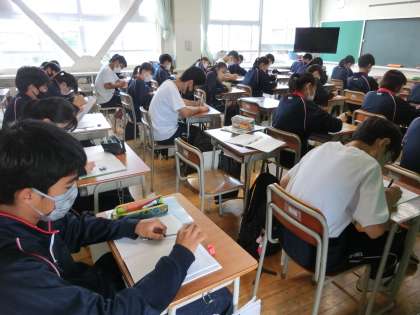 どのクラス、どの学年でも真面目に真剣に取り組んでいます。さすが弦中生だ!!
