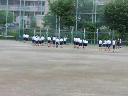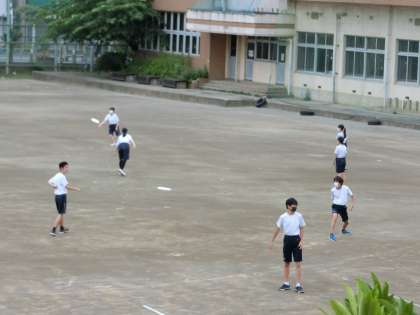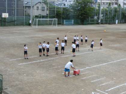 体育の授業はスポーツテストが続いています。ハンドボール投げ、立ち幅跳び。