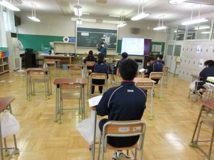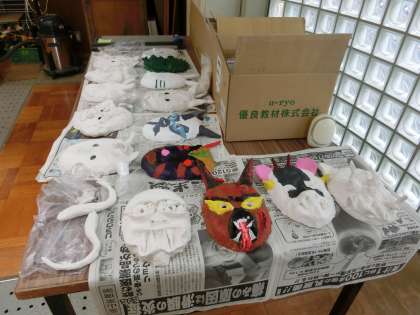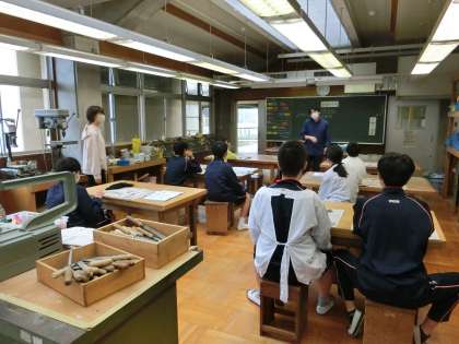 I組美術のお面づくりの授業、家庭科の授業です。