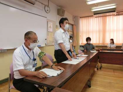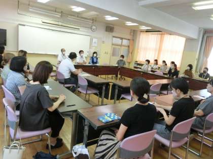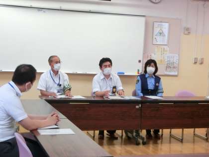 セーフティ教室の後は、警察の方、保護者と管理職、生活指導主任と意見交換会を行いました。世田谷警察署で扱っている少年犯罪の現状などを聞きました。また保護者の方からは、遊びに出かけた時の門限、夜遅くまでうろうろしていると補導されるなど、生活指導主任からは、夏休み前に夏休みの生活について生徒に話をするなど、伝えることができました。また、デジポリスについての周知もありました。