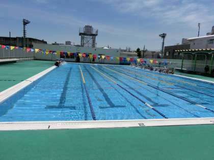 体育の授業。水泳をしていました。まさにプール日和でした。
