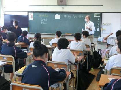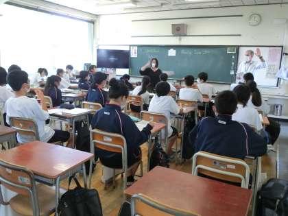 1年生の英語の授業。ALTの先生がきてくれました。ジェットさんありがとう。