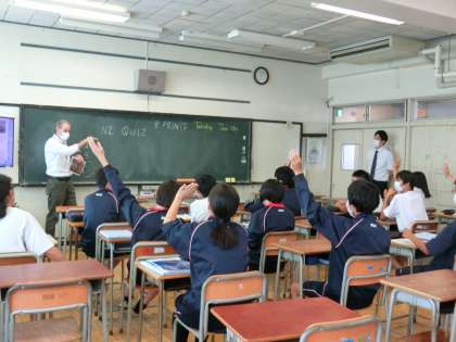 ニュージーランド出身のジェット先生。ニュージーランドクイズで楽しみました。