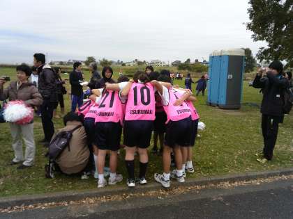3キロメートルのスタート前に円陣を組んで気合いを入れています。