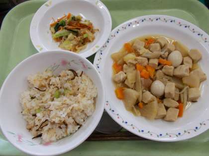 7月6日の給食 公開日 2022/07/06 更新日 2022/07/06 給食 ごはんの具は塩昆布と枝豆だけですが、塩昆布にうまみと塩気があるので食べやすい味になっています。 今日の献立 ・枝豆と塩昆布のごはん ・高野豆腐と野菜のうま煮 ・おかかあえ 食材産地【生鮮食品】 生姜:高知 ごぼう:群馬 大根:青森 人参:千葉 じゃがいも:茨城 長ねぎ:茨城 キャベツ:群馬 もやし:栃木 小松菜:茨城 鶏肉:岩手 いいね(0)