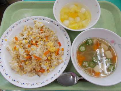 今日は七夕ということで、汁物はそうめんとオクラが入った「七夕汁」になっています。