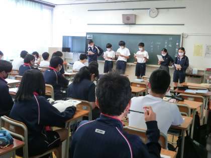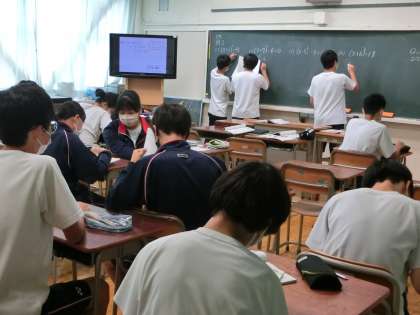 弦中の1日4 7月12日(火) 公開日 2022/07/12 更新日 2022/07/12 校長室より 数学の問題を黒板で解いています。 国語は、群読。原民喜さんと石垣りんさんの原爆の詩。心が痛いです。 いいね(0)