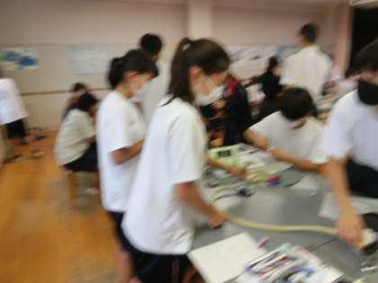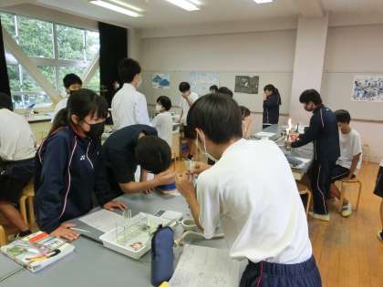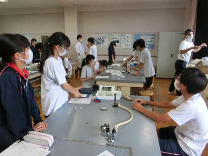 理科の実験。みんなで協力して実験をしていました。