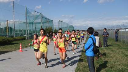 1人3kmを6人で走りました。熱い日差しの中、6名の選手と2名のサポートの頑張りによって、昨年度よりも順位を上げ、68位でゴールテープを切りました。
