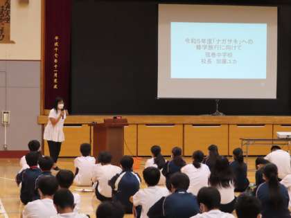 今年度も来年度ナガサキへの修学旅行に行く2年生に「平和学習」を行いました。