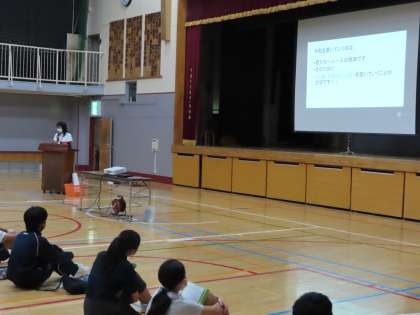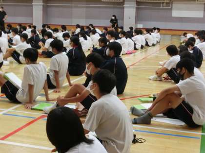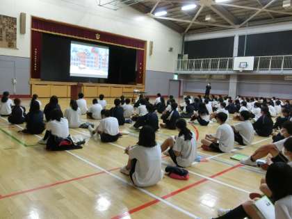 みんな真剣に映像を見つめ、メモを取る人もいました。後半もあるので、続きをクラスで見てください。10か月後は修学旅行、これからも一緒に勉強していきたいです。