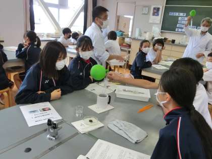 4時間目は、1年D組でした。生徒も先生も、科学の不思議に前のめりです。