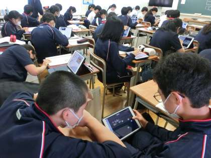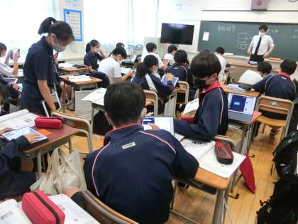 英語と理科の実験の授業です。