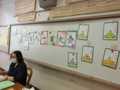 3時間目、I組では、百人一首大会で盛り上がっていました。