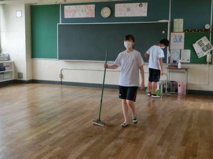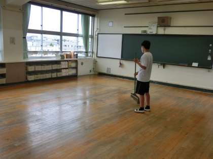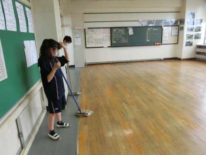 放課後、生徒が下校した後、美化委員が教室のワックスがけをしてくれました。