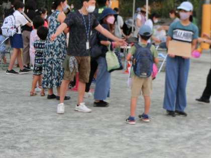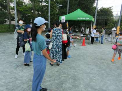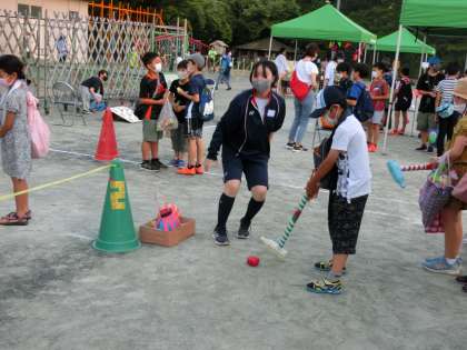 緑陰子供会第2部は五時から開始です。2・4・6年生の子どもたちが遊びに来ます。校庭で誘導係やゲームのお手伝いで弦中生が頑張っています。