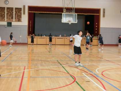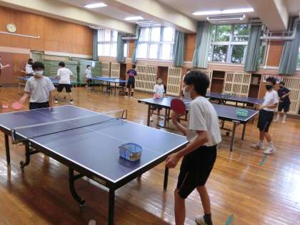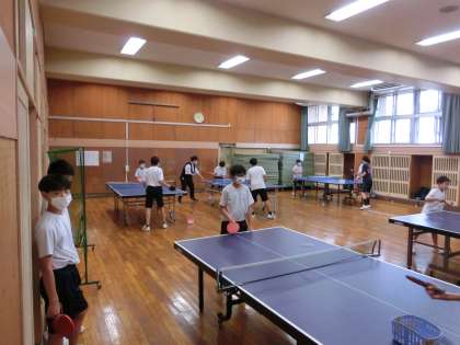 格技室で卓球部、体育館でバスケットボール部活動中。