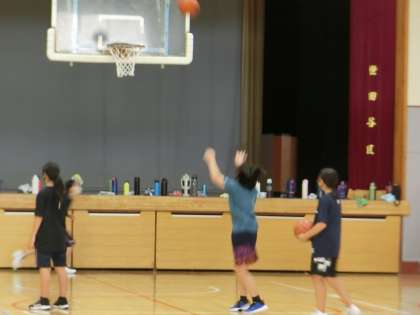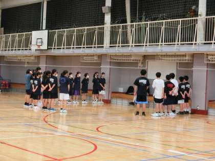 バスケットボール部体育館で活動中。