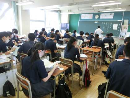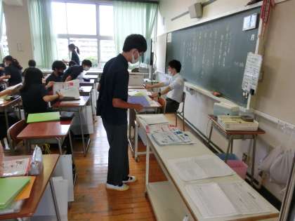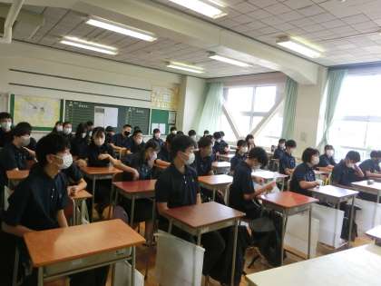 始業式の余った時間で、各クラス痰飲の先生からのお話や夏休みの課題を集めたりしました。