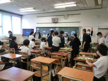 給食スタート1 9月2日(金) 公開日 2022/09/02 更新日 2022/09/02 校長室より 9月2日、今日から授業も給食もはじまります。2学期最初の給食は、みんな大好き「チキンカレーライス」でした。 久しぶりの給食、給食当番もしっかり頑張っています。給食をもらいに行く姿も、少し大人になったのかな。 いいね(0)