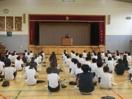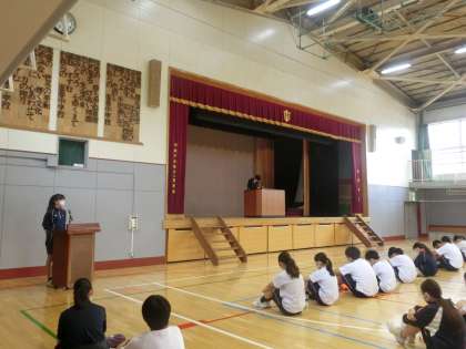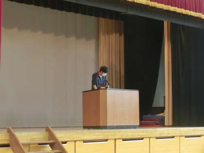 生徒会朝礼終了後、美しい日本語週間での校長講話を行いました。