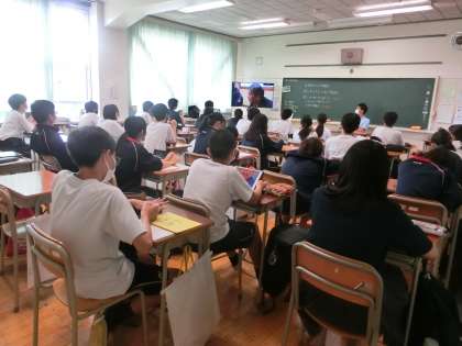 学校生活5 9月8日(木) 公開日 2022/09/08 更新日 2022/09/08 校長室より 給食放送は、生徒会役員選挙に向けて政見放送1年生でした。6時間目は、日本語の授業。3年生は「世界に広げたい日本語」のポスター作り。 いいね(0)