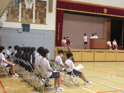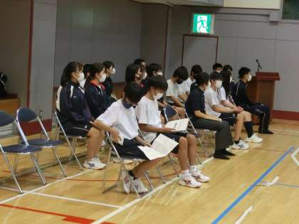 生徒会役員選挙リハーサル2 9月8日(木) 公開日 2022/09/08 更新日 2022/09/08 校長室より 立候補者も応援演説者もしっかりとできました。あとは当日を迎えるだけです。 明日の給食放送は2年生の政見放送です。頑張ってください。 いいね(0)