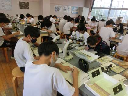 理科の授業、これから顕微鏡で様々な物体を観察するのかな。