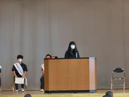 令和4年度生徒会本部役員を決めるための選挙立会演説会と投票がありました。立会演説会は選挙管理委員長のあいさつからはじまりました。