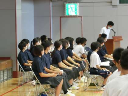 生徒会本部役員選挙立会演説会1 9月13日(火) 公開日 2022/09/14 更新日 2022/09/14 校長室より 立候補者も応援者もしっかりと自分たちの思いを伝えることができました。 いいね(0)
