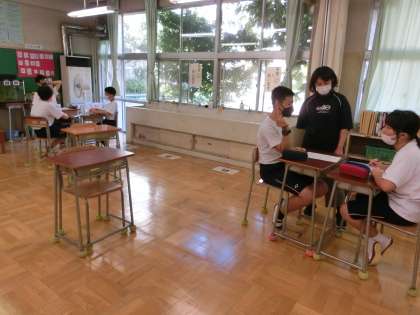 課題曲・自由曲を1曲ずつ歌ったあとは、係・委員会に分かれて話し合いをしました。