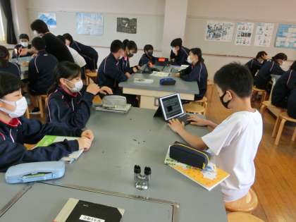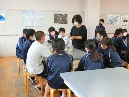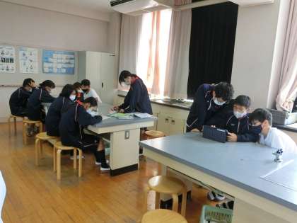1年生理科の授業。ガスバーナーの使い方について学習しています。