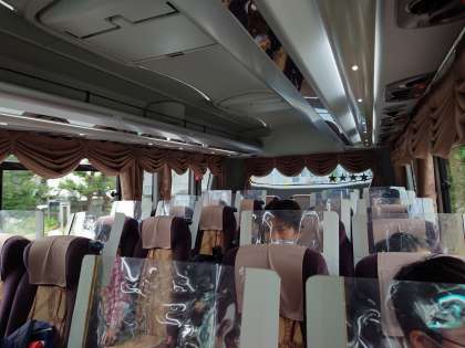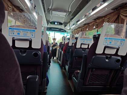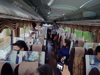 バスガイドさん、運転手さんの紹介、コロナ対応等のお話ありました。