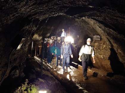 コウモリ穴の中は暗くて、狭くて、進むのが大変です。