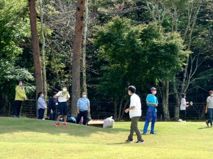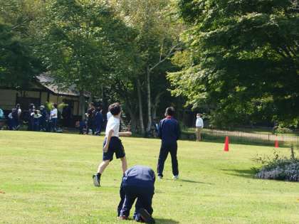 自由時間。バドミントンやキャッチボール、学校から持ってきた遊具で遊びまくりです。
