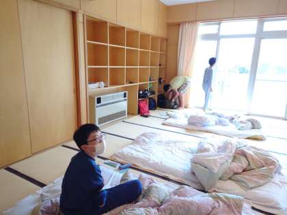 河口湖連合移動教室最終日の朝を迎えました。天気は曇。富士山は見えませんが、野鳥のさえずりは聞こえます。