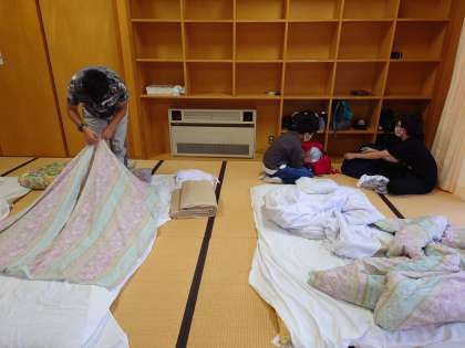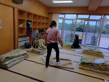 シーツなどの返却がはじまります。きちんとたためたかな?