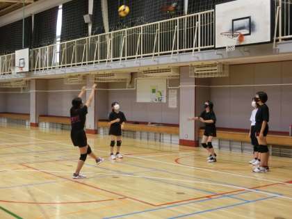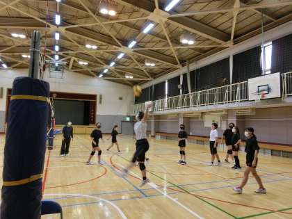 バレー部活動中。進路説明会のいすの片付けありがとうございます。