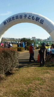 12月18日 冬晴れの二子玉川緑地運動場で第一回の世田谷子ども駅伝が行われました。