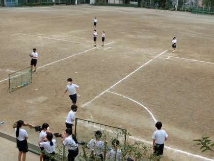 ソフトボール試合中。
