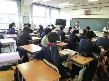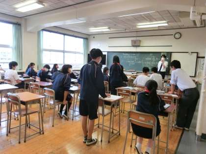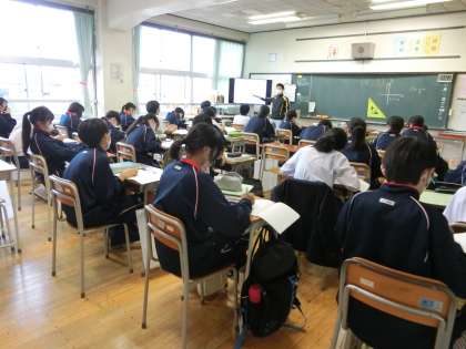 今日の授業1 10月13日(木) 公開日 2022/10/14 更新日 2022/10/14 校長室より 英語の授業。山本先生がお休みのために、3年生の少人数教室は講師の渡辺先生に授業をしていただいています。 2年生の数学は、お手紙でお知らせしたとおり、田中先生がお休みのために、しばらくは、学級単位で行っていきます。 いいね(0)