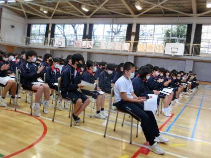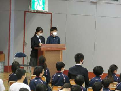 後期生徒総会10 10月14日(金) 公開日 2022/10/14 更新日 2022/10/14 校長室より 全ての議事が滞りなく承認されました。 議長団の解任です。 お疲れさまでした。素晴らしい議事進行でした。 いいね(0)