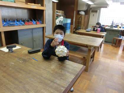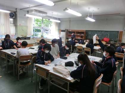 今日の授業5 10月20日(木) 公開日 2022/10/21 更新日 2022/10/21 校長室より I組の作業では、ペーパークラフトづくり。上手にできました。 美術では、1年生がレタリング中。 いいね(0)